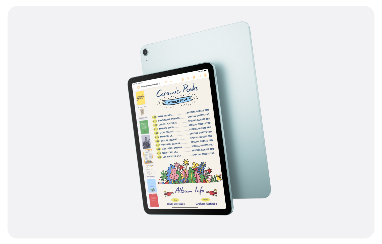 Начнём с того, что этот планшет впервые в истории получил версию на 13 дюймов. Раньше такого не было: Air-версии выходили в одной диагонали, а два варианта были у планшетов Pro-линейки. И хотя кажется, что разница в 2 дюйма незначительна, но при просмотре контента это ощущается: смотреть фильмы, сериалы или просто ретушировать фотографии намного удобнее на планшете с диагональю 13 дюймов. А ещё в 13-дюймовом девайсе улучшили звук: качество, громкость, уровень басов звучат не хуже, чем у портативной колонки.