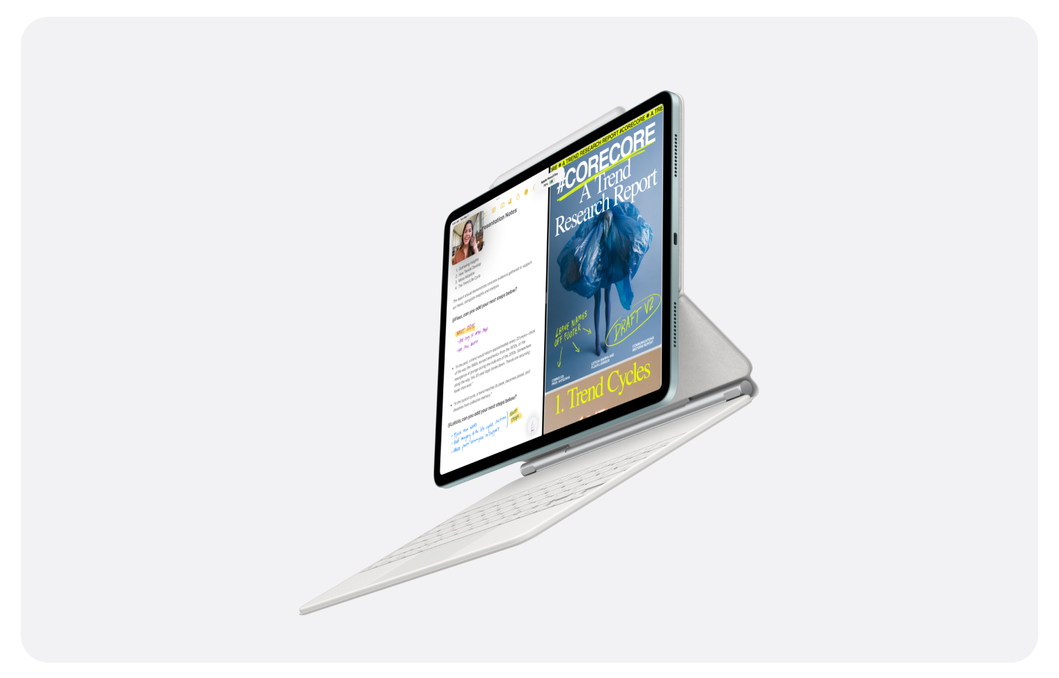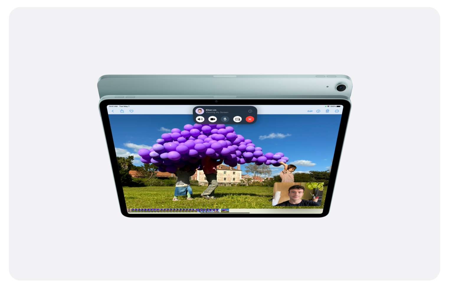 Визуально новый iPad Air — тот же iPad Air на чипе M1, но с небольшими изменениями. И главное из них — то, что «глазок» фронтальной камеры теперь располагается на длинной стороне планшета. И это сильно радует, ведь теперь можно без проблем пользоваться устройством в горизонтальном положении во время созвонов. Да и изменение положения камеры поможет функции «CentralStage», которая отслеживает положение головы, творить свою магию. А точнее, камера будет удерживать фокус на вас, даже если вы активно передвигаетесь во время видеозвонка по FaceTime. Кстати, перемещение камеры привело к тому, что изменилось магнитное соединение, где заряжается Apple Pencil. И теперь к iPad Air подходит только новый Apple Pencil Pro и прошлогодний Apple Pencil USB-C.